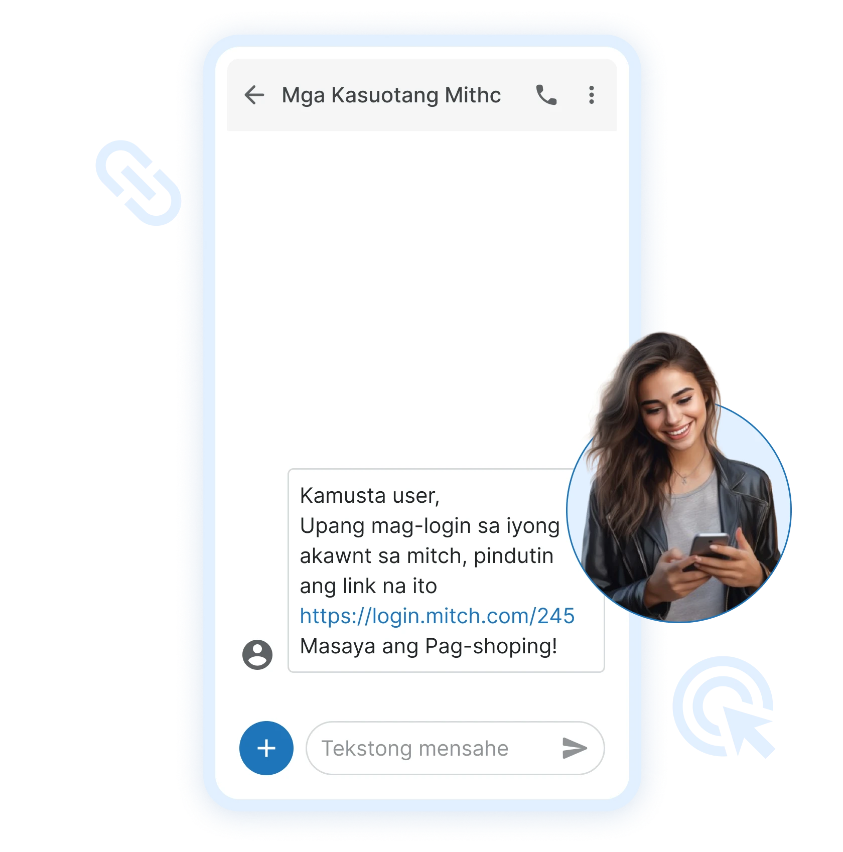 Ang Magic Link ay isang simpleng paraan ng pag-authenticate na isang click lang at hindi na kailangan ng password o OTP. Sa halip, makakatanggap ang mga user ng isang ligtas at natatanging link sa kanilang napiling channel—email, SMS, WhatsApp, RCS, o iba pa. Sa pag-click ng link, agad silang ma-authenticate at magkakaroon ng access sa platform o serbisyo. Ito ay mabilis, ligtas, at user-friendly na alternatibo sa tradisyonal na paraan ng pag-authenticate, na nagbibigay ng walang sagabal na karanasan habang pinananatili ang mataas na antas ng seguridad. Kung magla-login sa app, magbe-verify ng transaksyon, o mag-a-access ng portal, ginagawang madali ng Magic Link ang pag-authenticate.